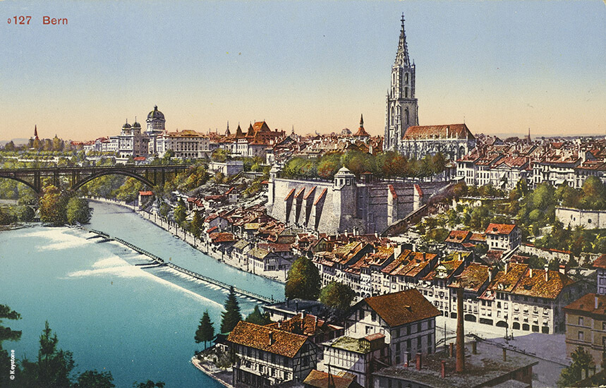 Wie die entsprechende Darstellung zeigt, bewegten sich im Zuge der Industrialisierung auch die beiden Deutschschweizer Binnenstädte Bern und Zürich auseinander. In Zürich lag der Ausländeranteil 1910 bei 33,8%, in der Stadt Bern dagegen bloss bei 10,8% und damit sogar unter dem Schweizer Durchschnitt. In der Bundeshauptstadt blieb die Bedeutung des industriellen Sektors weit hinter Zürich zurück.
